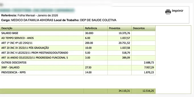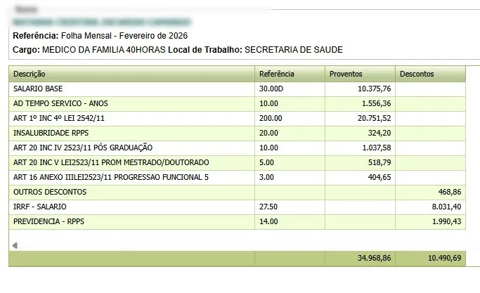 Além disso, pelo menos dois médicos lotados na estrutura administrativa da pasta estariam recebendo gratificações previstas na Lei Municipal nº 2542/11, destinadas a profissionais que realizam atendimentos à população. No entanto, segundo informações preliminares, esses profissionais não estariam exercendo atividades assistenciais diretas nas unidades de saúde.
