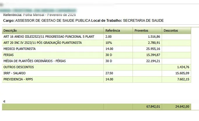 Levantamento preliminar aponta que profissionais da área da saúde estariam recebendo valores e gratificações que, em tese, deveriam estar vinculados ao atendimento direto à população — mesmo estando lotados administrativamente dentro da própria Secretaria.