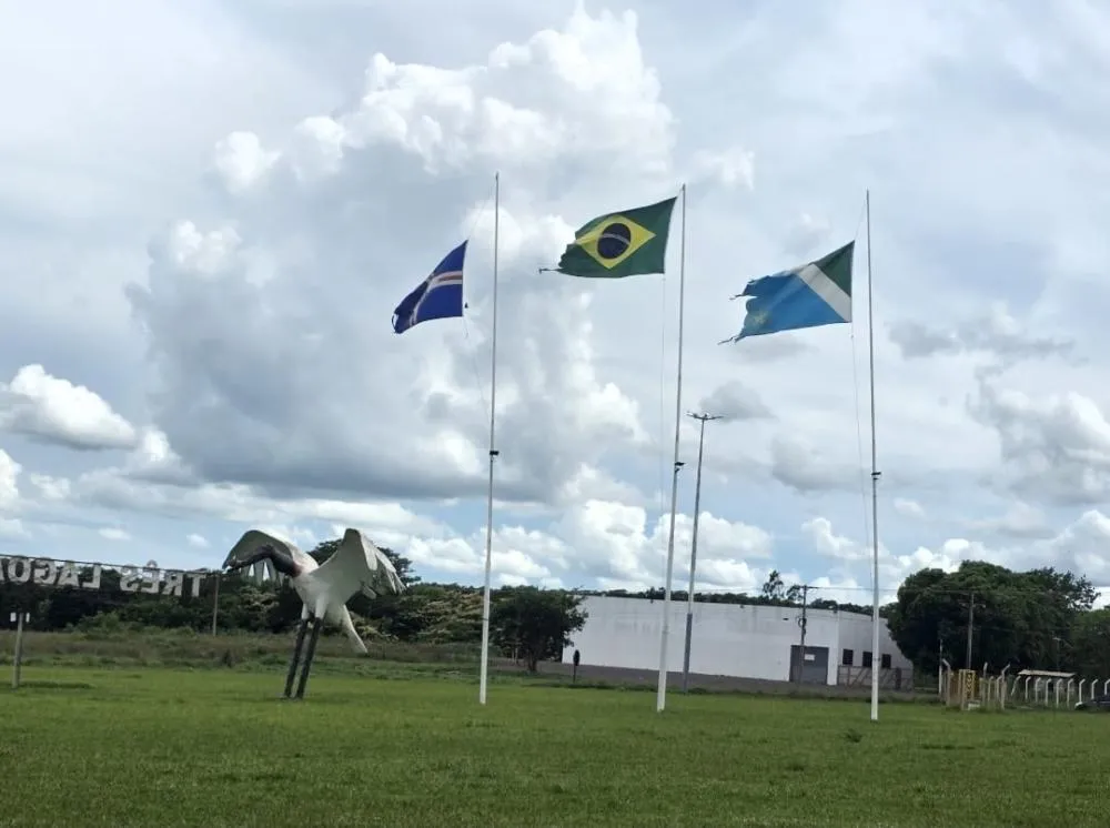 Quem chega a Três Lagoas pela principal entrada do município se depara com uma cena que causa indignação: a bandeira do Brasil, a bandeira de Mato Grosso do Sul e a bandeira de Três Lagoas estão rasgadas em visível estado de abandono.